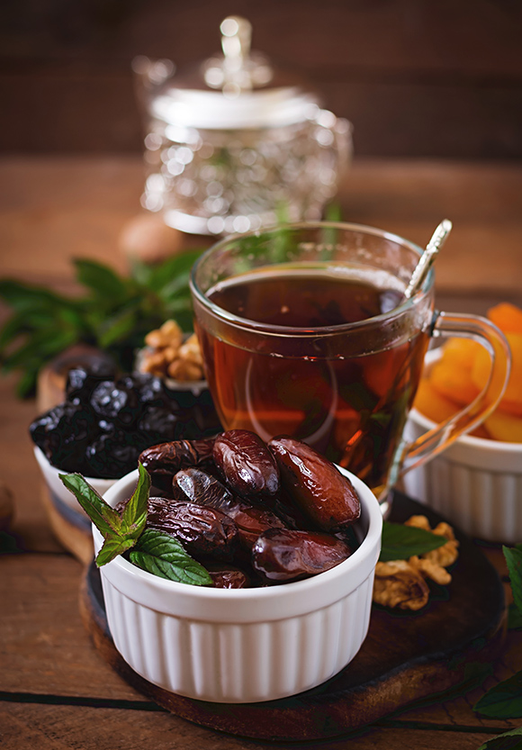 Deep, dry-textured dates rich in antioxidants and fiber that support digestive health and immune defense.
