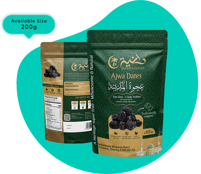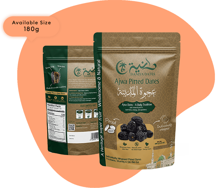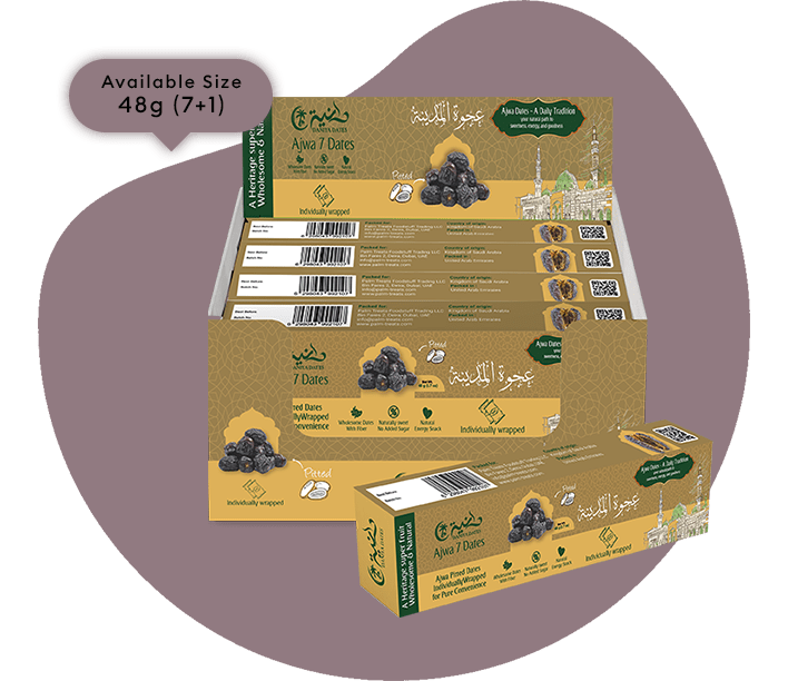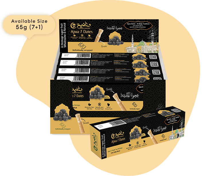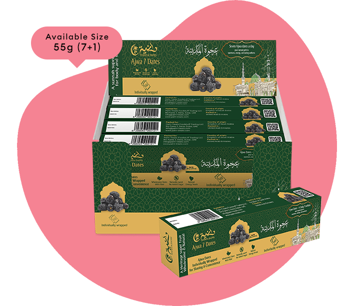Ajwa dates connect Sunnah and wellness—seven-date packs designed for effortless daily use, keeping faith and health at heart.